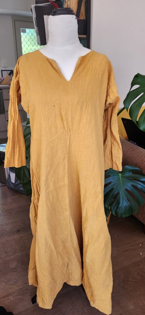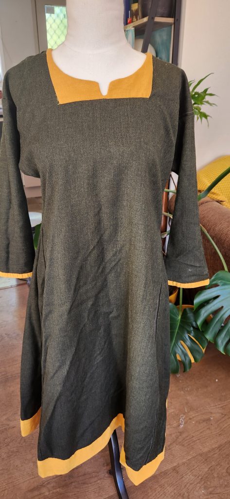 I was graciously welcomed into the Royal Household for the reign of Konungr Þorvaldr and Dróttning Amabilia. As their reign was Norse-themed, I was encouraged to garb myself appropriately in the ‘one true way’ of Norse, or at the very least, early period. The ‘something else’ in this instance is thus being a member of the Royal Household! In truth, it was simply an excuse to make more garb. I wanted these garments to be flexible for the general norse/anglo-saxon range, and be useful casual additions to my wardrobe.